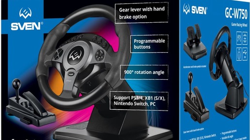 Обзор игрового руля SVEN GC-W750 для пк с коробкой и педалями и углом поворота на 900 градусов