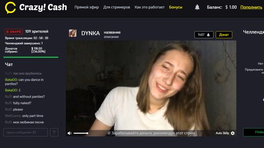 🔥 Как заработать 💲 100 долларов на стримах и челледжах в CrazyCash tv 🔥