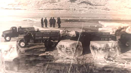 Так случилось, что в подписи к одной из фотографий в моем рассказе «Зимний завоз в Окинской экспедиции», где запечатлена колонна машин, стоящая на льду окруженная огромными монолитными глыбами речного льда, была допущена неточность. Подпись гласила, что это произошло на р. Оке, когда в глубокий омут провалился грузовик и в процессе его вытаскивания были вырублены и вытащены эти огромные глыбы льда. Позднее, участник и руководитель этого рейса, главный инженер экспедиции Валериан Дагбаевич Арабжаев...