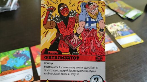 Обзор самостоятельного дополнения «Эпичные схватки боевых магов: Крутагидон. Экстремально острый чипсихоз». Суть игры: игроки собирают колоды сильных карт, чтобы в финале игры набрать больше победных очков, чем их противники. Базовая механика: Игроки получают себе планшеты колдунов с 20 жизнями, фамильяра и колоду из 10-ти стартовых карт. 7 базовых карт имеют показатель «+1 мощи» — основную валюту в игре, 3 карты бесполезны. Игроки сразу берут 5 карт в руку. В свой ход колдуны разыгрывают карты...