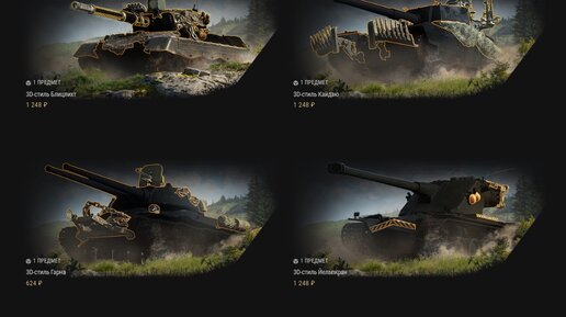 История 3D-стилей в WOT и Мире танков Трехмерные стили в "Танках" развиваются с каждым годом. Впервые они появились в новогодних коробках: кажется, там был БатЧат, Гриль и кто-то еще среди первых (напомните в комментариях, пожалуйста). Затем появился Боевой Пропуск, в рамках которого стали делать эти же 3Д-камуфляжи на все десятки. Через Мирный-13 распространяли стили на другие уровни. Сейчас же в Мире танков можно зайти в премиум-магазин на сайте и купить практически любой 3D- и 2D-стиль, из когда-либо появлявшихся в игре...