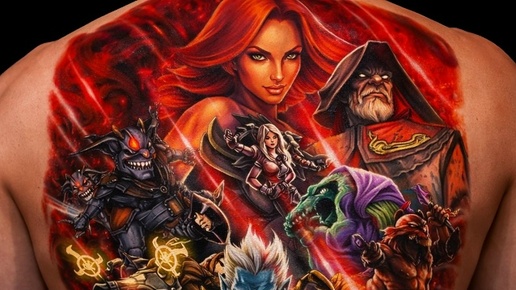 Татуировки, вдохновлённые популярной игрой Dota 2, становятся все более популярными среди фанатов. На представленном изображении мы видим яркий пример такого творчества. Татуировка выполнена в насыщенных красных и черных тонах, что создает драматический эффект...