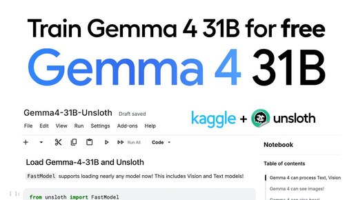 🚀 Обучение модели на 31 миллиард параметров полностью бесплатно с использованием Kaggle и Unsloth. GitHub: https://github.com/unslothai/unsloth Гайд: https://unsloth.ai/docs/models/gemma-4/train Ноутбук: https://kaggle...