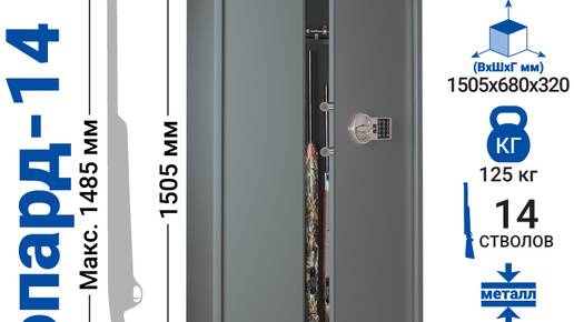 Новинка! Оружейный сейф с электронным кодовым замком GunSafe Леопард-14 EL для хранения до 14 единиц оружия высотой до 1485 мм ✅Полностью удовлетворяет требованиям МВД и Росгвардии к хранению оружия физическими и юридическими лицами.