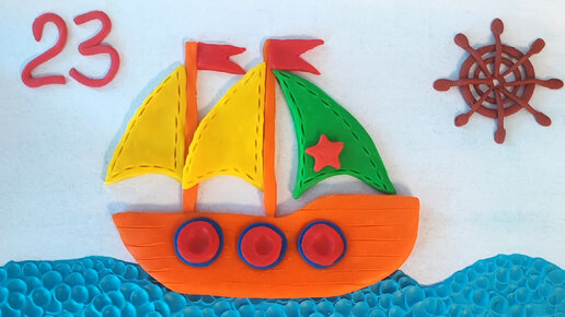Поделка к 23 февраля своими руками. Аппликация из пластилина на картоне " Корабль".