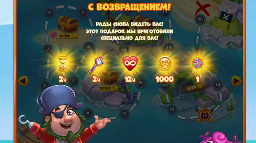 Судя по количеству игроков, «Сокровища пирата» достаточно популярная игра. В ней никто никого не убивает, ни расчленяет, ни преследует, но игра все равно остается любимой!))) Итак, по существу. Как обманули меня. Обидно, но вчера меня надули и не дали супер-пурер приз после прохождения 75 уровня в дополнительной игре. Обидно? Да не очень. Не за призами я пришла в эту игру, а исключительно, чтобы дать 5-10 минут отдохнуть мозгам. Как они обманули себя. Не знаю, что там за алгоритмы, но порой ежедневные призы я получаю 2 раза в день...
