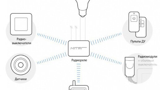 Из каких элементов состоит и как они взаимодействуют между собой В центре системы беспроводного управления находится блоки управления этот блок собственно замыкает и размыкает линию которая подает питание к свету он может это делать получив команды от: 1. Радио-выключателей 2. Датчиков 3. Пультов дистанционного управления Радио-модули Могут отправлять команду блоку на включение/выключение света Каждый из передатчиков привязывается к блоку отдельно - можно привязать до 200 выключателей каждому блоку...