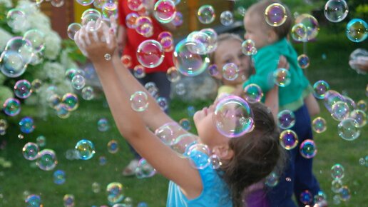 Представляю вашему вниманию несколько идей на тему игр с мыльными пузырями. Пузырьки вверх! Все игроки образуют круг. Выбираем одного игрока, который будет стоять в середине, и даём этому игроку бутылочку пузырей палочку для их выдувания. Попросите игрока выдуть так много пузырьков, как он сможет. Остальные игроки должны попробовать держать летящие мыльные пузыри в воздухе как можно дольше, дуя на них снизу вверх. Когда последний пузырек сел на землю, лопнул, новый игрок идёт в середину круга. Играйте,...