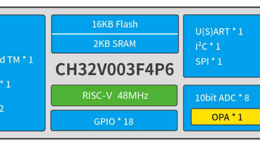 Купил на распродажу на Алиэкспресс 20 шт. микроконтроллеров CH32V003J4M6 за 270 рублей. Разберемся, что это за зверь такой и что с ним можно сделать Серия CH32V003 основана на ядре QingKe RISC-V2A промышленного микроконтроллера общего назначения, с частотой 48 МГц, широким диапазоном напряжений, однопроводным последовательным отладочным интерфейсом, низким энергопотреблением, сверхкомпактным. Серия CH32V003 имеет встроенную группу контроллеров DMA, группу 10-разрядных АЦП, группу компараторов на...