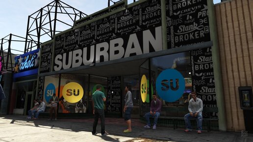 Так,как я остановился на магазинах одежды в этой части расскажу о них. 1.Suburban - это магазин одежды для молодежи. В GTA 5 можно обнаружить 4 таких магазина, акции suburban также присутствуют на бирже bawsaq(только в одиночной игре)...