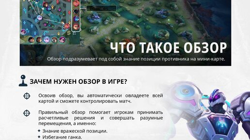 Привет, давайте разберем почему видимость карты и ее обзор имеет важное значение для победы в матче. Обзор - это знание позиции противника на мини карте, освоив его вы сможете контролировать матч и принимать правильные решения. Например знать вражескую позицию, избегать Ганга, устраивать засады и так далее. Как работает обзор Вражеские единицы, которые видны любому союзнику или башням будут отображаться на мини-карте. Дальность обзора одинаковая для всех героев. Однако ее можно расширить с помощью определенных методов и навыков...