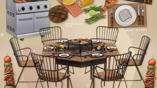Набор "Backyard BBQ Party" от Cowbuild идеально подойдет для обустройства уютной гриль-зоны на участке ваших симов. Во дворе теперь можно разместить мангал, удобную мебель и атмосферные декорации для вечеринок...