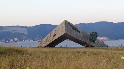 Сегодня посетим мемориал "Малая земля" - уникальный памятник, который не имеет аналогов нигде в мире. Музей по своей форме напоминает переднюю часть носа боевого корабля, вырвавшего на полном ходу из моря на берег. Состоит памятник из двух опор, одна закреплена в море, другая на суше, на высоте 22 метров они пересекаются вместе и в общем виде образуют что-то похожее на треугольную арку под наклоном. На борту уходящем в море, на камне изображен многофигурный рельеф с бойцами готовящимися ринуться в атаку...
