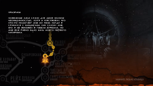 Всем привет, друзья! А вот и долгожданное продолжение прохождения игры Метро 2033. Сразу напомню - это прохождение на плохую концовку, и поэтому я не выполняю никаких добрых дел (помощь нищим, детям и т.п.). Итак, приступаем :) В прошлой части я остановился на том, что встретился с Ханом. Довольно интересной личностью, который увлёк меня за собой в тёмные тоннели метро. Глава 3. Хан: Призраки Итак, мы снова в тоннелях метро. Там. где нет людей, а только мутанты, темнота и холод. Но с напарником легче, особенно с таким, который явно знает многое об этих тоннелях...