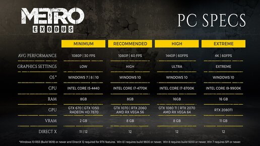 Системные требования Metro Exodus