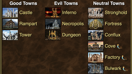 Как мы знаем, в "Героях 3" существует три типа мировоззрения у городов: Добрый, Злой, Нейтральный. К добрякам относятся Замок, Башня, Оплот; к злюкам - Инферно, Некрополис, Подземелье; а нейтралы - все остальные: Цитадель, Крепость, Сопряжение + Причал и Фабрика из HotA. По сути, все новые города, которые выпускает HotA Crew, относятся к нейтральным, таким будет и Кронверк. Поскольку Heroes 3 - не ролевая игра, в плане отыгрыша все эти мировоззрения имеют значение только в кампании. Большую часть времени вам будет по барабану, что, например, нежить очень злая, а эльфы - добряки...