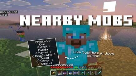 Nearby Mobs — это компактный и удобный мод для Minecraft PE (Bedrock), который выводит названия всех ближайших мобов в нижней части экрана. Эта функция работает подобно субтитрам из Java-версии, помогая игроку заранее определить, какие сущности находятся поблизости, даже если они не видны визуально. Отличный помощник в пещерах, тёмных биомах или при охоте на мобов. После установки мода на экране начнут отображаться подписи с именами мобов, которые находятся рядом и активно двигаются. Визуальные уведомления появляются внизу экрана и обновляются автоматически при появлении новых существ...