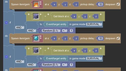 Я рад вас приветствовать! Сегодня будем делать рандомный дроп. И извините что долго не было... Поехали. Дроп с руды Для начала создаём текстуру и саму руду Когда мы всё сделали, заходим в Triggers и when block destroyed by player. Делаем такую процедуру(Можно...