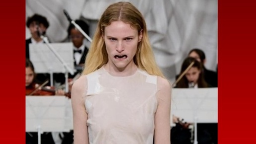 На днях программа «Постскриптум», которая выходит на канале ТВЦ, показала сюжет о модных показах некоторых европейских и американских брендов. Настойчивая пропаганда уродства вызывает шок. На показах весна лето 2026 особенно отличился европейский модный дом Maison Margiela. Дефиле шокировало зрителей видом манекенщиц. В рот каждой из них были вставлены металлические скобы, похожие на приспособления для пыток и удерживающие губы в неестественном положении. А может, это вампиры с торчащими зубами?...