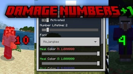 Аддон Damage Numbers для Minecraft PE (Bedrock) отображает наносимый и получаемый урон прямо в игровом мире. Он показывает числа с помощью оптимизированных частиц и поддерживает индивидуальные настройки для каждого игрока. Вы сможете выбрать шрифт, цвет, а также длительность отображения урона или исцеления. После установки аддона игроки автоматически получают специальный предмет настроек. При использовании этого предмета открывается персональное меню, в котором можно настроить отображение чисел урона и лечения: изменить шрифт, задать нужные цвета и длительность отображения...