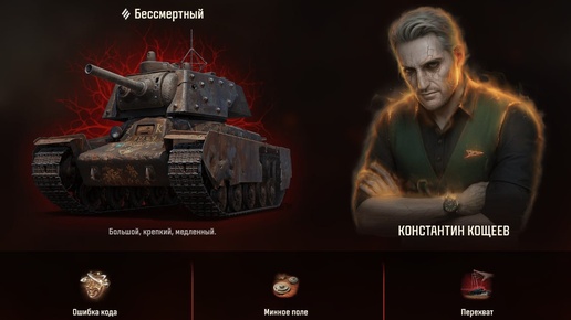 В "Разломе" против сил зла выступят 4 мощные машины! Выбери свою судьбу: "Бессмертный" (Командир: Константин Кощеев): Непоколебимая крепость на колёсах! Огромный, прочный, но неторопливый. Идеален для тех, кто предпочитает сокрушать врага мощью и непробиваемой бронёй. "Ураган" (Командир: Ядвига Ягинская): Мастер дистанционного боя! Держите врагов на расстоянии и обрушьте на них шквал разрушительных атак. "Лицедей" (Командир: Иван...