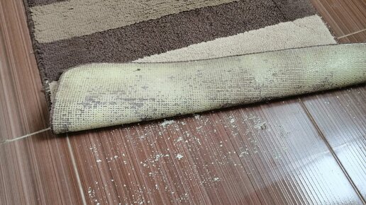 У многих есть такие комплекты ковриков в санузел. Они мягкие, лёгкие, резиновые с обратной стороны. Коврик прослужит долго, только не стираете его в машинке. Посмотрите, что получилось после стирки. Резиновое покрытие стало прилипать к плитке кафельной и отдирать от плитки, то ещё удовольствие...