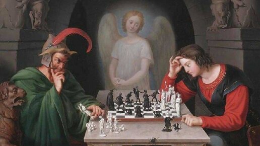 На кону партии — душа человека. Юноша, склонясь над игровой доской, продумывает следующий шаг. Его положение приближается к безысходности. Лукавый соперник, чувствуя своё превосходство, терпеливо предвкушает победу. Спустя 31 год, в 1861 году, американскому шахматисту Полу Морфи предложили сыграть за белых...