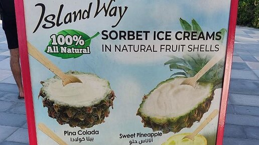 Недавно я сделала обзор на один из лучших бесплатных пляжей Дубая - Kite beach. Именно там находится моя любимая кафешка, где продается наивкуснейшее мороженое разных вкусов. Его фишка заключается в том, что оно продается в кожуре от фруктов. Всего 7 вкусов: - Пина колада