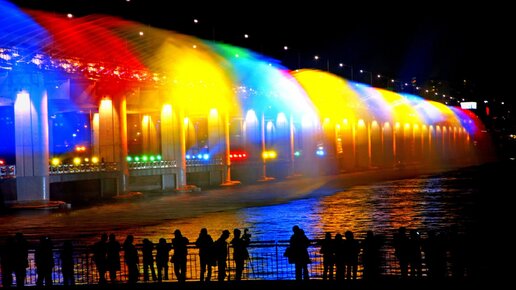 Мост «Фонтан радуги» — самый длинный мост-фонтан в мире (1140 метров). Официально занесен в Книгу рекордов Гиннесса, расположен в Сеуле. Мост «Фонтан радуги» – уникальное сооружение, в котором совмещены функции мостового перехода и фонтана. В конструктивном отношении мост представляет дорожное полотно...