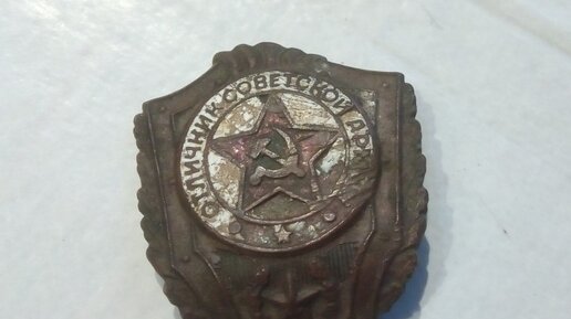 Однажды на обычной дороге я обнаружил втоптанный в землю значок. Оказалось, что это знак "Отличник Советской армии", но только в очень печальном виде. Вот так он выглядит: Я никогда не был отличником Советской Армии, поэтому полез в Интернет за поиском информации по такому значку. Оказалось, что знак этот был учрежден еще в 1957 году. Его цель была - поощрить всех, кто служил в Советской армии за успехи в боевой и политической подготовке, а также за примерную дисциплину. Самое главное - запись о награждении знаком вносится в военный билет...