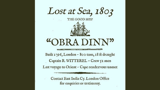 В последнее время мало можно наблюдать детективных игр, где приходится действительно думать, а не прибегать к помощи встроенного в игру помощника. И первая игра за долгое время, с которой мне выпала честь познакомиться, это "Return of the Obra Dinn" - игра геймдизайнера Лукаса Поупа, который подарил миру игру "Papers, Pleas". Аннотация у игры следующая: В 1802 году торговое судно «Обра Динн» вышло из Лондона на Восток с двумя сотнями тонн груза на борту. Шесть месяцев спустя оно не достигло следующего пункта назначения, Мыса Доброй Надежды...