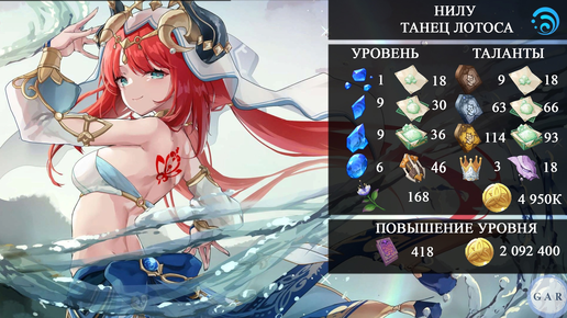 Нилу — ⭐⭐⭐⭐⭐ гидро героиня из Сумеру, предпочитающая меч в качестве оружия. Оглавление: Характеристики Сильные стороны Нилу: Слабые стороны Нилу Оружие Увеличивает НР на 20-40%. Попадание элементальным навыком на 20 сек. создаёт Великое сказание, которое повышает мастерство стихий на 0,12-0,24% от максимального запаса здоровья . Эффект возникает не чаще 1 раза в 0,3 сек. и складывается до 3 раз. После получения 3 уровней или обновления длительности 3 уровня, мастерство стихий всех персонажей поблизости увеличится на 0,2% от макс...