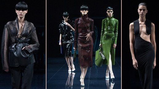 Показ открылся с фирменного приема Tom Ford - кинематографического прожектора на темном подиуме, который попал на группу моделей в облегающих платьях-пальто из лакированного материала черного, бордового и зеленого цветов. Светлые, темные, сильные, хрупкие. Хайдер Акерманн обратился ко множеству людей со своей второй коллекцией для Tom Ford. И его слушали. Знаменитости, среди которых были Памела Андерсон, Джанет Джексон, Кейт Мосс и Рита Ора, вскочили и начали аплодировать сразу же после того, как показ закончился в дыму...