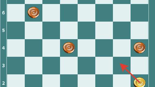 На примере разбираем правила взятия шашек соперника в русских шашках.