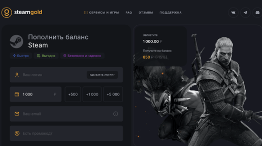 SteamGold: обзор сайта пополнения баланса Steam