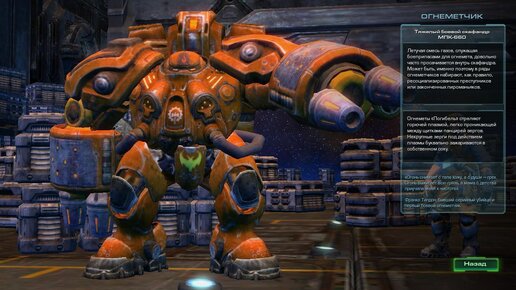 Огнеметное оружие в RTS Реактивные, ранцевые и другие огнеметы пехоты (продолжение) В том же 98-ом стартовала StarCraft. Игра не нуждается в излишних представлениях. Действие разворачивается в далеком будущем, в отдаленном секторе галактики, где потомки сбившихся с курса колонизаторских кораблей после междоусобных войн основали Конфедерацию. Потомки землян именуют себя терранами. В 2499 году Конфедерация сталкивается с угрозой нашествия зергов, а так же с силами протосов. Развернувшееся противостояние получило название - Первая Галактическая война...