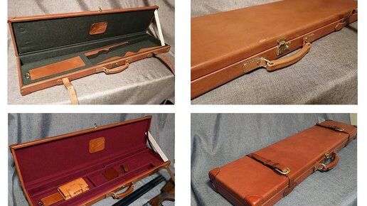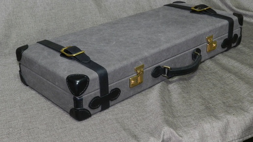 Оружейный кейс, предназначенный для комбинированного ружья. Его каркас, выполненный из прочного материала, обтянут серым брезентом. Декоративные элементы, такие как ремни, углы, держатели ремней и ручки, изготовлены из натуральной кожи. Фурнитура выполнена из латуни, что придаёт кейсу элегантный и роскошный вид. Кейс для штуцера состоит из нескольких отделений: * Отделение для блока стволов; * Отделение для приклада; * Отделение для оптического прицела и погонного ремня; * Отделение с крышечкой для мелких предметов...