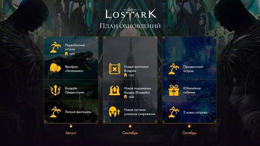 18 июля компания Astrum опубликовала план обновлений Lost Ark на август-октябрь 2023 года. Героев ждёт приключение на новых территориях и множество ивентов, включая мероприятия к грядущему Дню рождения Лост Арк. План согласован с разработчиками из Smilegate RPG, что гарантирует выпуск контента в сроки. Предстоящие новинки раскрыты в формате тезисов: - Август: Первобытный остров, Волдайк (предыстория), Летний...