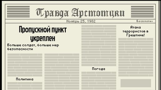 1. Имя в документе должно совпадать с именем в паспорте 2. Номер паспорта должен совпадать 3. Среди указанных стран для свободного въезда должна быть Арстоцка Первый всегда дипломат с действительными документами Третий снова Джорджи Костава. (Если Вы пропустили его ранее, сегодня он не появится). Вместо разрешения на въезд у него пропуск. Если указать на ошибку: Пятый въезжающий - Вестник Ордена. Оставит записку с именем Корман Дрекс Девятый въезжающий - Корман Дрекс, чьё имя указано в записке...
