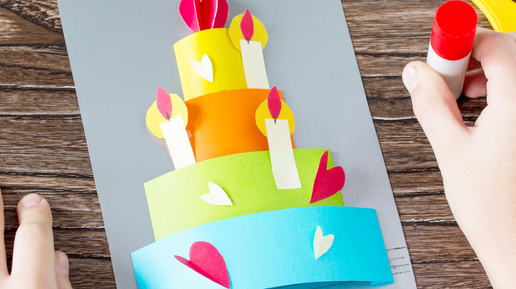 Сочный, сладкий и совсем без сахара! :) Полезен всем и каждому! Такую поделку можно подарить как открытку на день рождения или просто классно провести время за созданием этого шедевра! Для поделки понадобится: бумага для основы, цветная бумага для тортика, ножницы, клей, ручка или карандаш Сначала нарисуем основу Потом испечем ярусы Вырежем свечи и сердечки из...