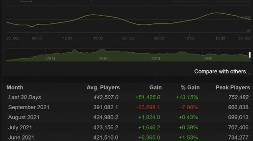 По данным портала Steam Charts, 29 октября, после выхода нового патча вместе с новым героем Marci, пиковый онлайн в Dota 2 вырос. 28 октября одновременно в Dota 2 играло более 674 тысячи человек. 29 октября, после выхода патча, пиковый онлайн составил 740 тысяч человек одновременно...