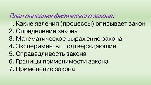 Прежде, чем мы начнём отвечать на билеты, расскажу про некоторые общие вопросы, касающиеся подготовки к экзаменам. Я имею ввиду нормальные экзамены по билетам, а не всякую егэересь. Для описания физических законов, явлений, величин, приборов и т.п. есть план. Такой план легко найти в сети. Год или два назад у нас в школе были курсы по психологии. Профессиональный психолог от образования как Чёрт от ладана уворачивалась от таких категорий, как система, план. Ей на нравились эти слова. А мы не станем бояться и назовём некоторые из планов описания всего в физике...