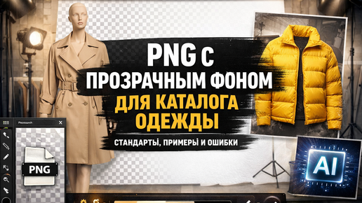 Фото в каталоге одежды продаёт раньше, чем текст. Но если на одном снимке серый фон, на другом голубой, а на третьем видно край циклорамы — карточка товара выглядит дёшево и выбивается из общей витрины. Именно поэтому маркетплейсы и интернет-магазины уходят в стандартизированные изображения: товар на чистом, аккуратном фоне или PNG с прозрачным фоном, куда можно подложить любой брендовый бэкграунд. В этой статье разберём, что такое PNG с прозрачным фоном для каталога одежды, какие есть требования...
