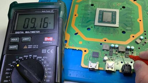 Всем привет! Принесли в ремонт PS4 pro с проблемой - не включается. Владелец самостоятельно разобрал консоль, почистил и заменил термопасту. После сборки консоль не включилась, засветился синий светодиод и погас. Носил в один из сервисов нашего города, но там приговорили процессор к замене. Что ж, приступаем к осмотру: Все сопротивления оказались в норме, учитывая показания с рабочих плат (запоминаю либо просто записываю). Почему на фото именно этот узел? Объясню: на плате промаркированы все предохранители и термисторы, для удобства диагностики...