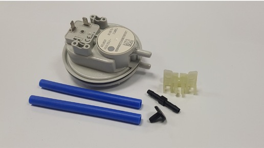 Прессостат (реле давления воздуха) — обязательный элемент безопасности в турбированных котлах с принудительным дымоудалением (согласно ГОСТ Р 55006‑2012). Его задача: Как это работает: Важно! Если прессостат не «видит» работу турбины, котёл не запустится. Это защита от скопления угарных газов в помещении. Типичный прессостат состоит из: На корпусе указаны параметры срабатывания — например, 55/45 Pa или 0,55/0,45 mBar. Это давление, при котором контакты замыкаются. При замене строго соблюдайте эти значения (допуск — ±5 % от номинала)...