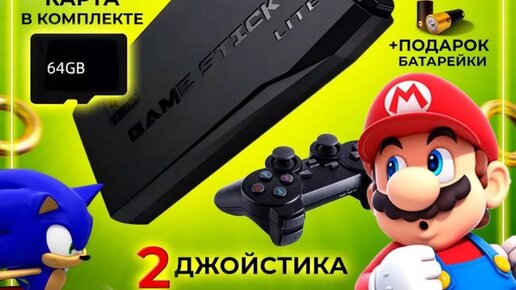 Game stick lite - игровая ретро приставка за 1250 руб это отличное устройство вспомнить детство 90х, начала 2000-х, да и с детьми поиграть, погрузить их в мир нашего детства. Собственно покупал консоль на небезызвестном маркетплейсе валдберис и обошлась она в 1240 кровно заработанных. По мне цена отличная, тем более в комплекте идёт сама консоль, 2 беспроводных геймпада со своим usb адаптером, картой памяти, в моем случае на 64 ГБ, кабелем удлинителем HDMI для тех, у кого неудобное подключение или...