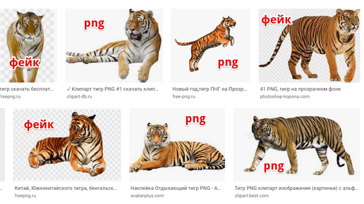 Типичная ситуация: захожу в Гугл Картинки и ввожу запрос типа "тигр png". Хочу вставить тигра в презентацию и чтобы он был без фона! Что в итоге я вижу? Куча картинок тигров, а на фоне серые квадратики, что вроде бы говорит мне о том, что тигр действительно без фона. Ладно, выбираю какую-нибудь картинку. Скачиваю. И в итоге получаю вот это: И чтобы найти картинку действительно без фона, приходится скачивать тигров один за другим и проверять. Это жуткая трата времени! Как решить эту проблему? Во-первых, Гугл сам уже сделал шаг в этом направлении...