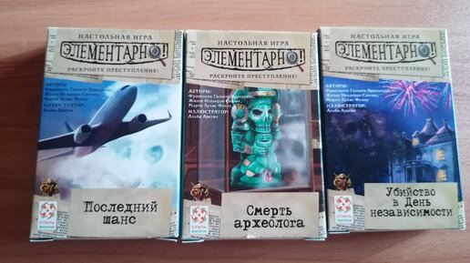 Все коробочки этой серии. Элементарно №1: "Убийство в День Независимости", "Последний шанс" и "Смерть археолога". Элементарно №2: "13 заложников", "Пропавший без вести" и "Пожар в лаборатории". Элементарно №3: "Смерть дворецкого", "Секреты миллионера" и "Гробовое молчание". Элементарно №4 "Дикий запад": "Выстрелы на рассвете", "Проклятая шахта" и "Гробовое молчание"...