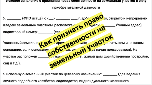 Признание права собственности на земельный участок: порядок процедуры, образец иска