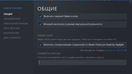 Для установки параметров запуска DBD зайдите в библиотеку Steam, щелкните правой кнопкой мыши по Dead by Daylight, выберите «Свойства», затем в появившемся окне прописывайте их через пробел. Подробное...